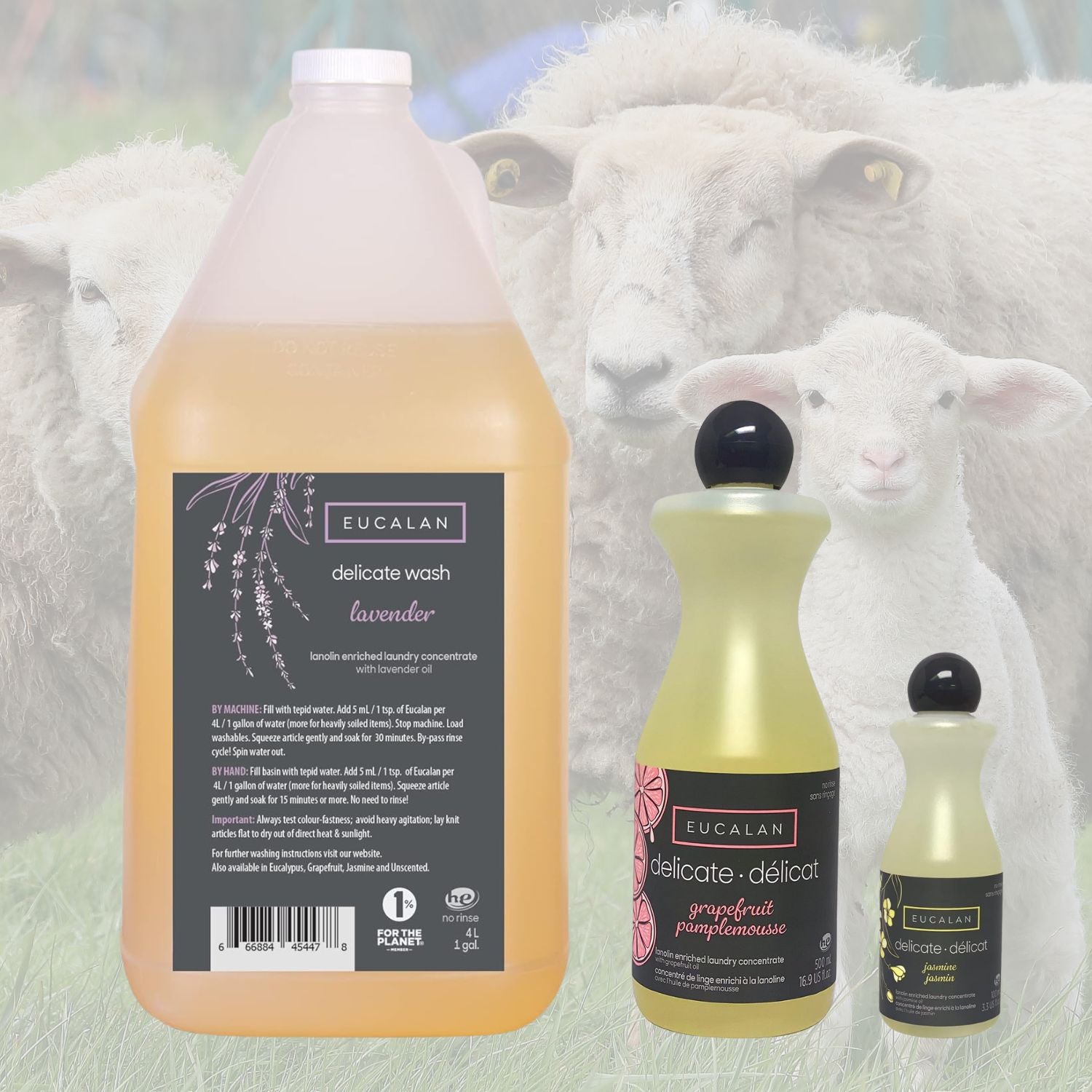 Eucalan cleans & softens all fine washables such as wool, cashmere and silk with amazing results and no rinsing. Concentrate contains fiber restoring lanolin.
