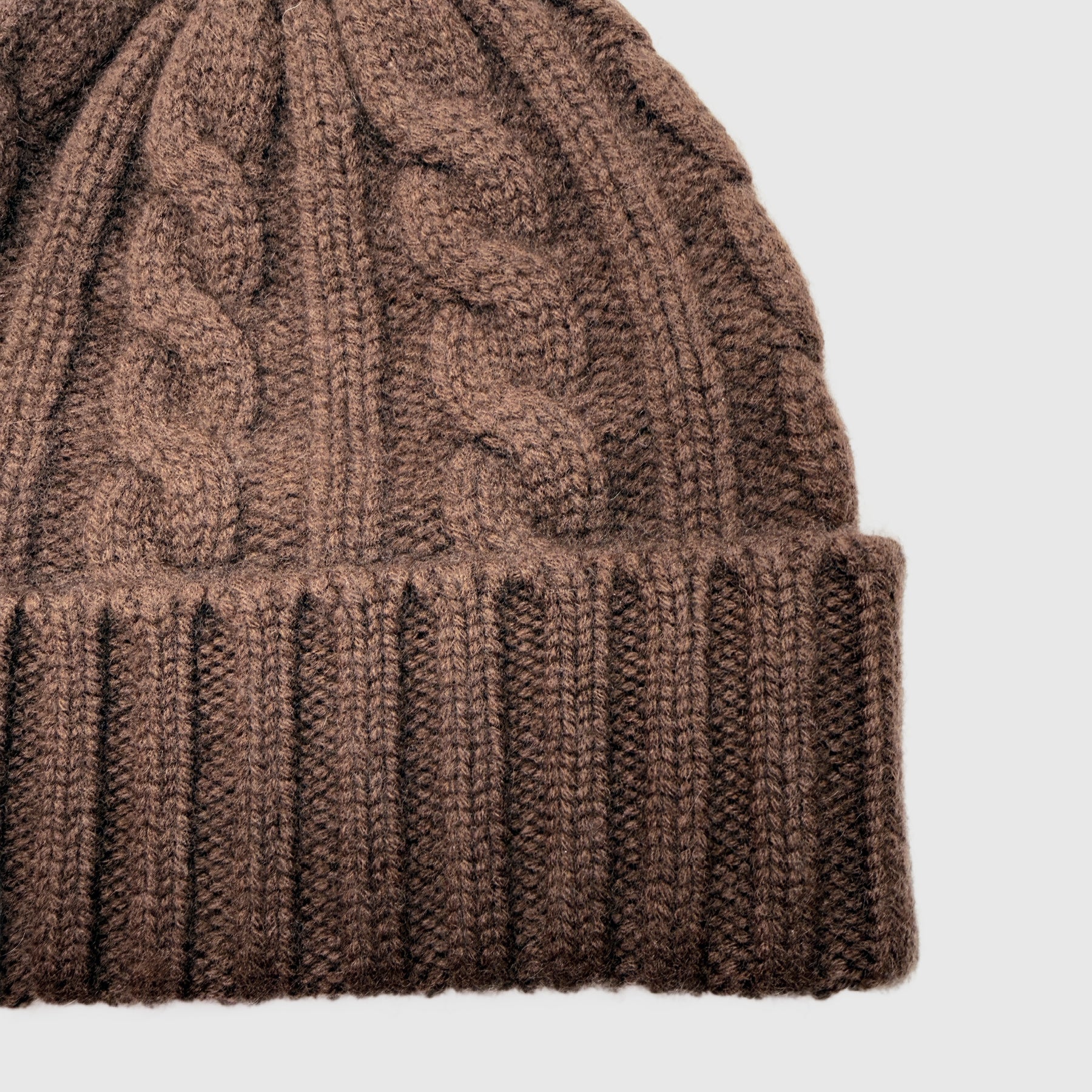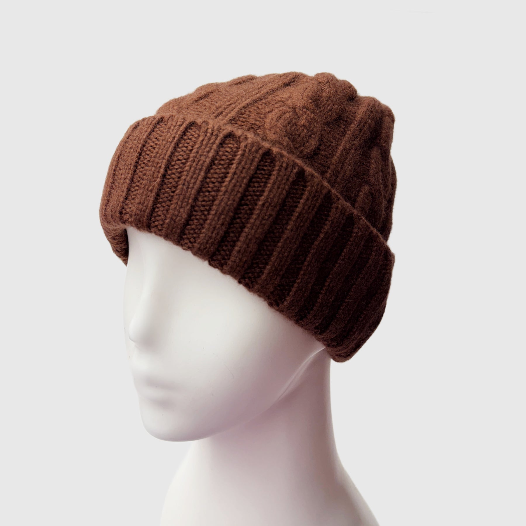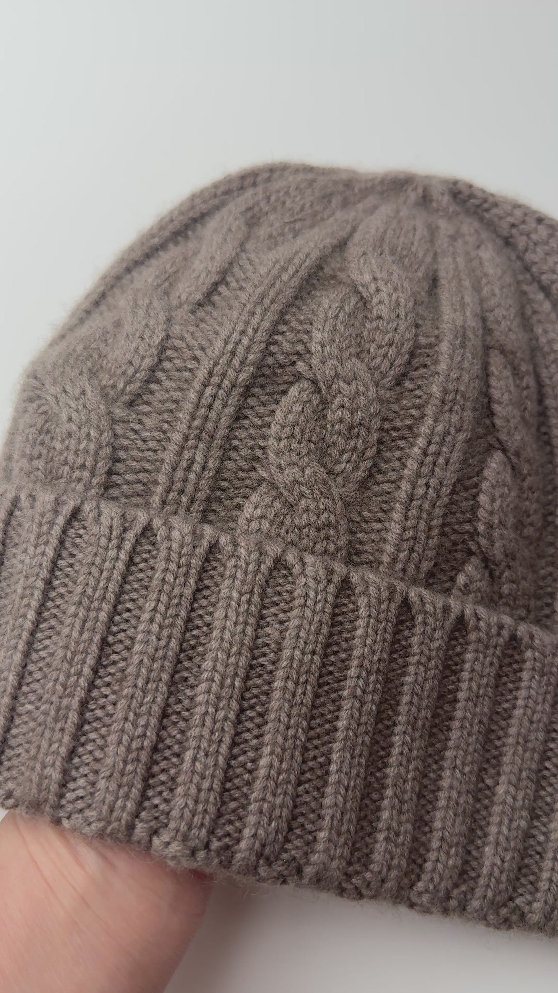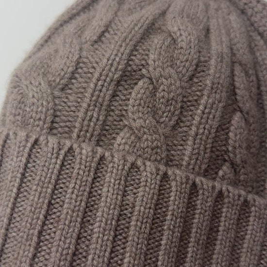 Cashmere cable knit beanie hat.