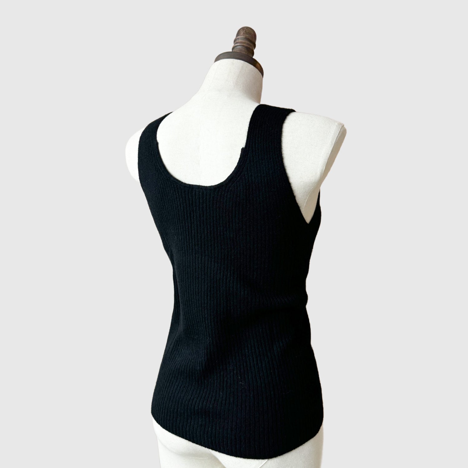 Indulge in unparalleled comfort and style with this expertly crafted cashmere camisole. Featuring a ribbed knit design, this top naturally enhances stretch for a flattering, form-fitting silhouette. The V-neckline and wide shoulder straps add a modern, sophisticated touch, making it perfect for layering or wearing alone.