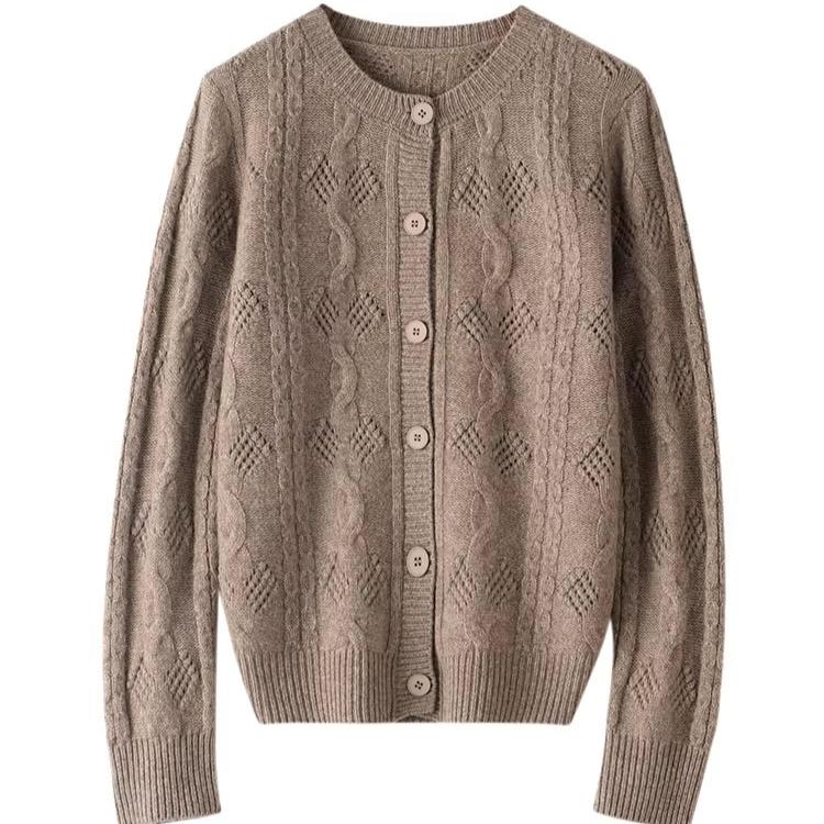 Classic merino wool cable knit cardigan.