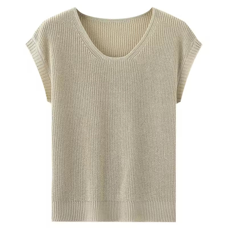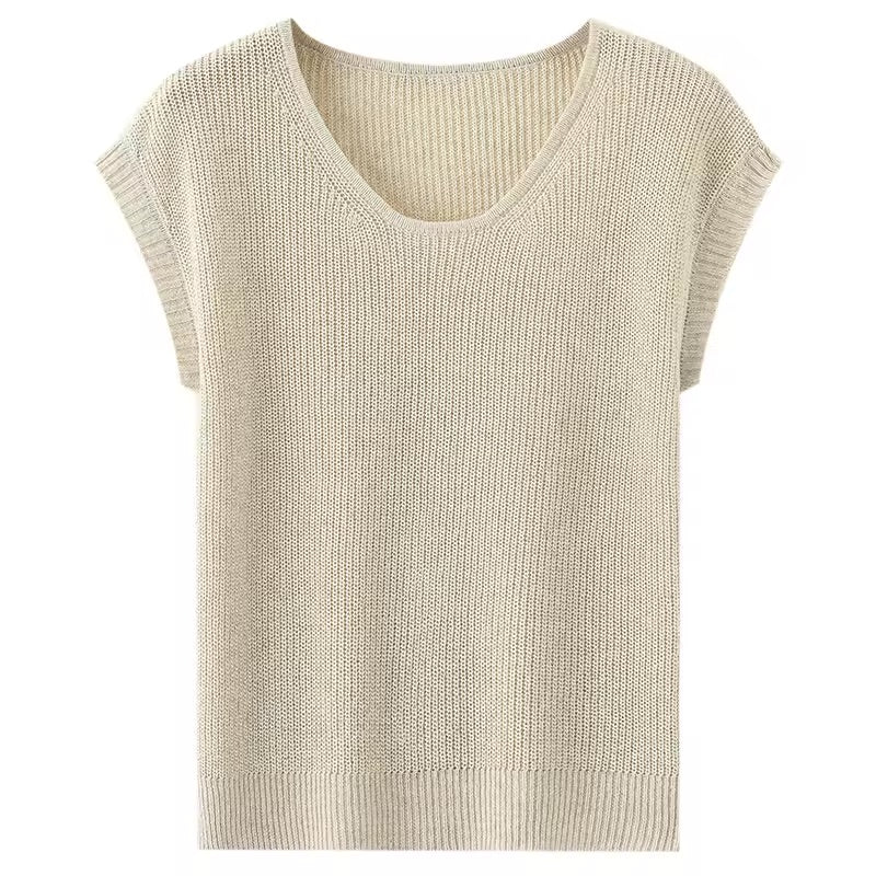 A soft, breathable, and lightweight short-sleeved linen knit — perfect for hot and humid weather. Designed with a relaxed slouchy shoulder and a timeless U-neck, this top is an easy warm-weather essential.