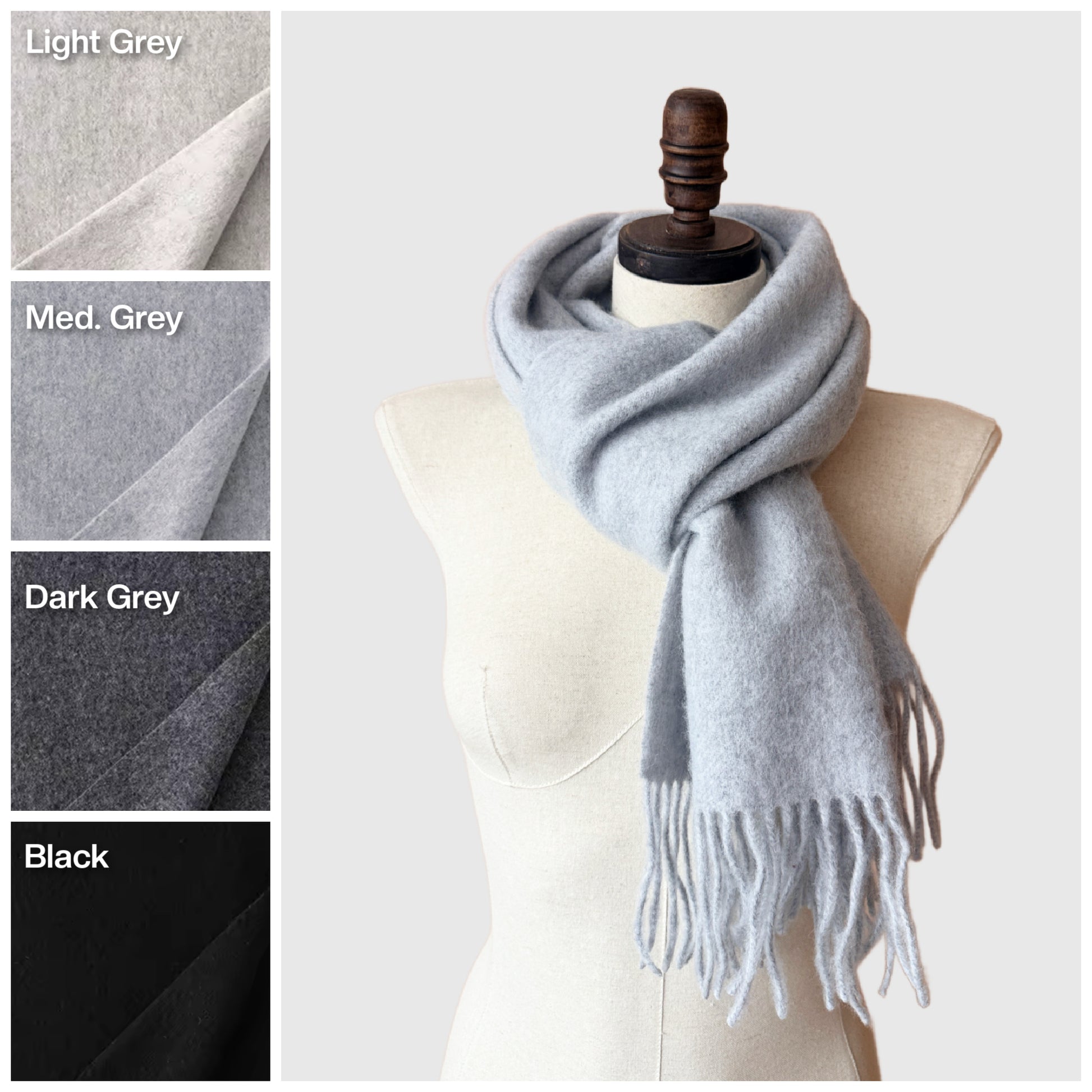 Monotone Merino Wool Scarf | Long scarf with tassels | 4 Colors
