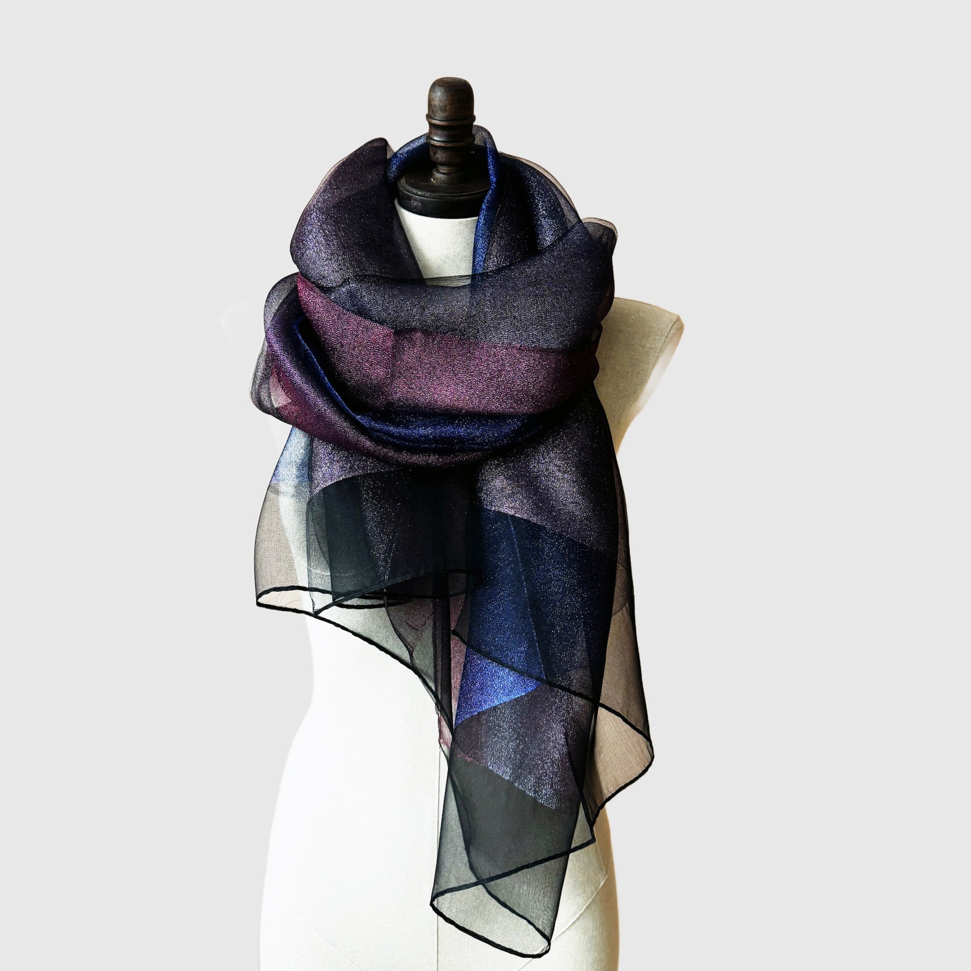 50% Natural Mulberry Silk 50% Polyamide with metallic thread gauze. - Handmade and shipped from our studio in Ontario, Canada.