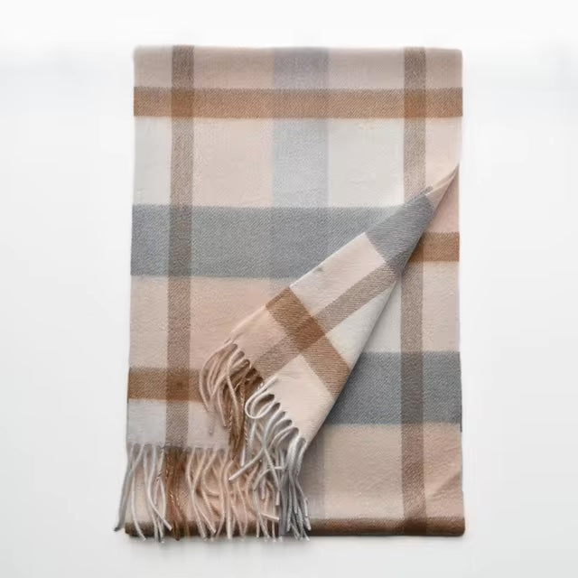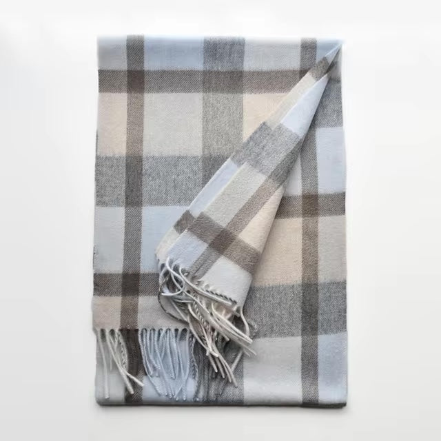 Natural cashmere scarf in pastel plaid.