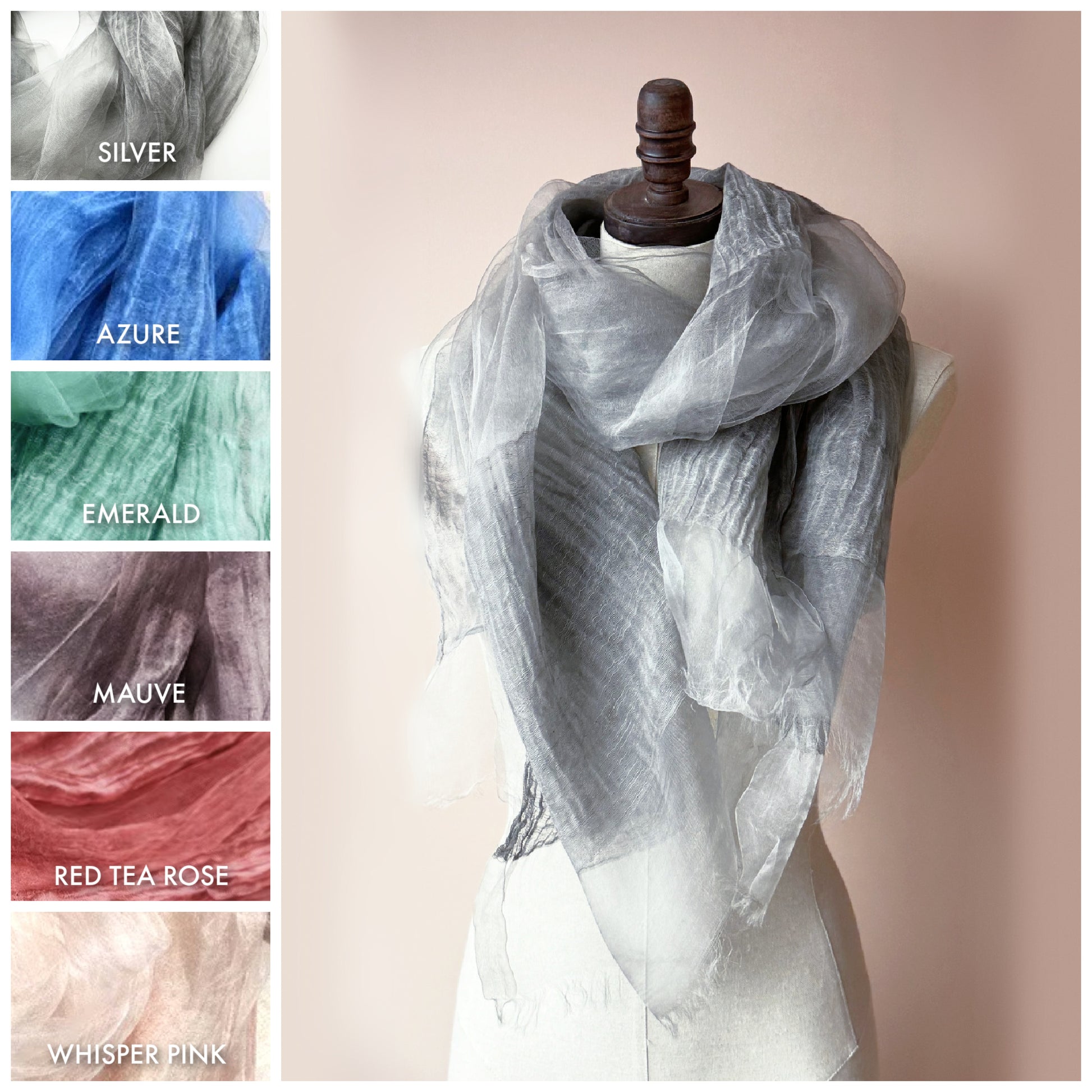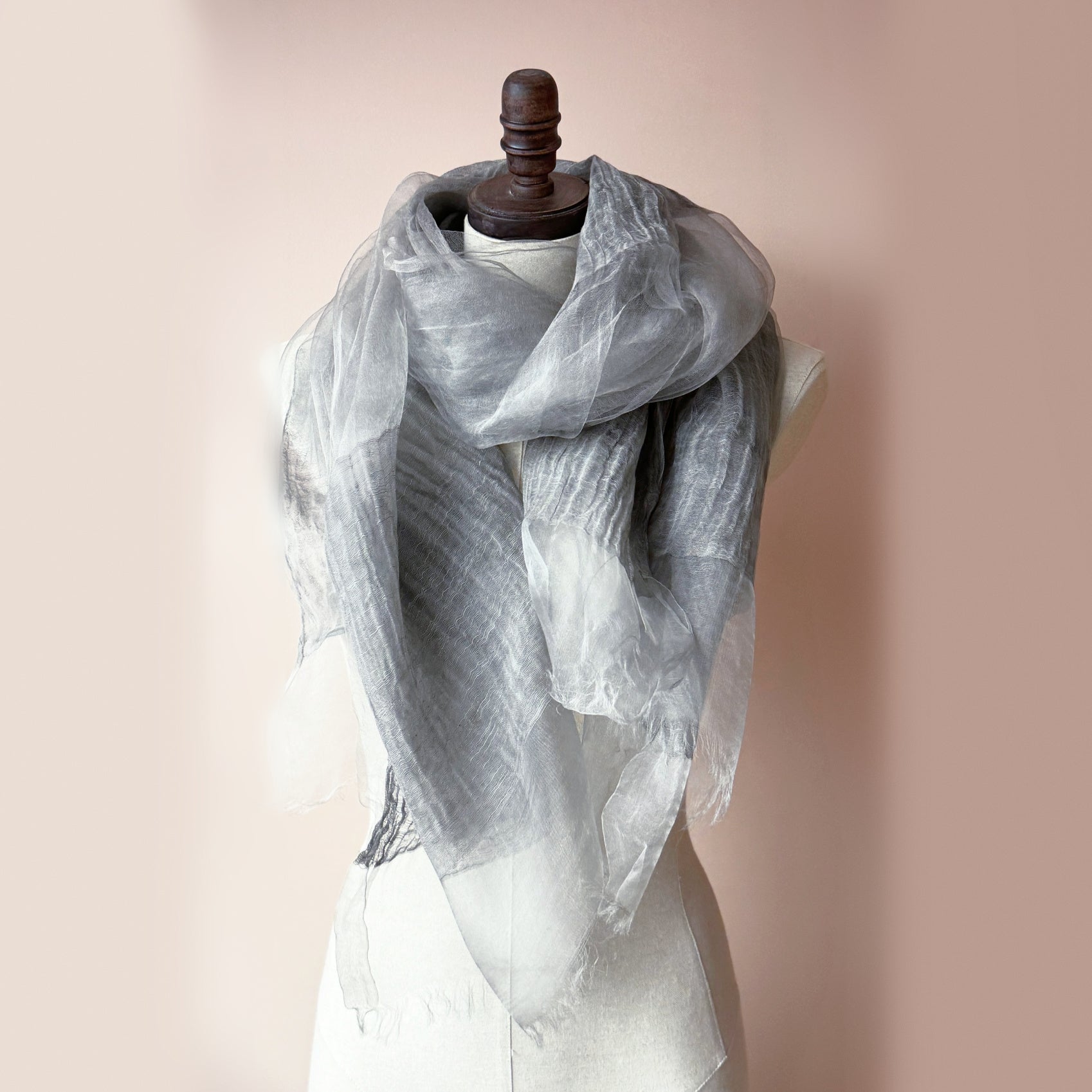 Very light and airy natural Mulberry silk gauze wrap scarf.