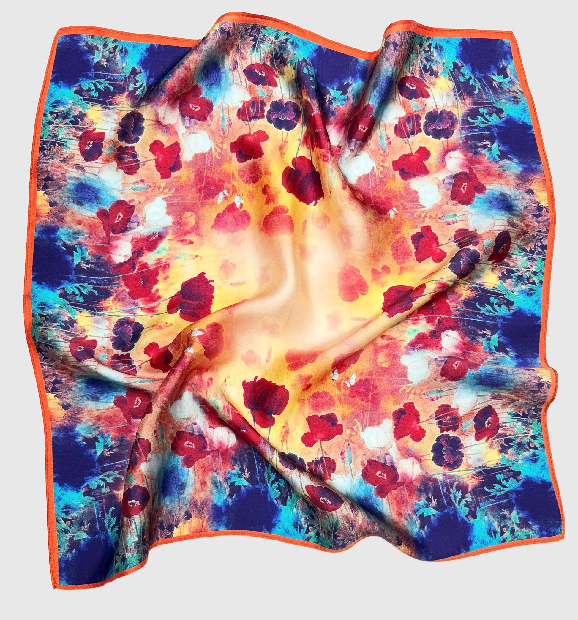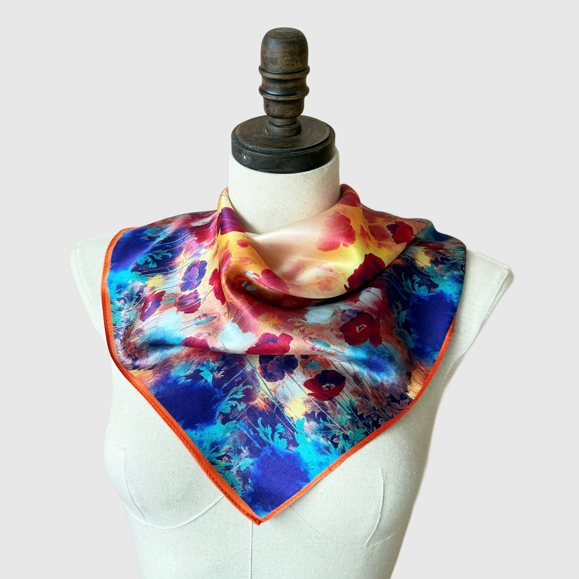 Elegant 100% Mulberry Silk Neck Scarf featuring wild poppies.