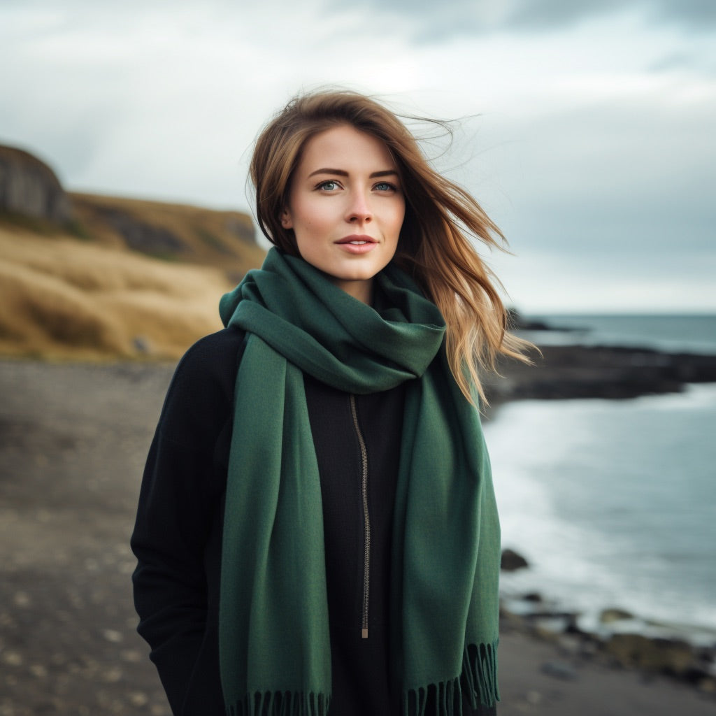 CLEARANCE Oversized lambswool scarf in Olive Green